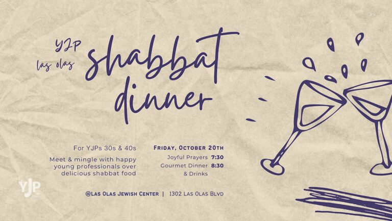 Meet & Mingle with Happy Young Professionals over Delicious Shabbat Food Friday October 20th 7:30 Joyful Prayers 8:00 Gourmet Dinner & Dr Meet & Mingle with Happy Young Professionals over…