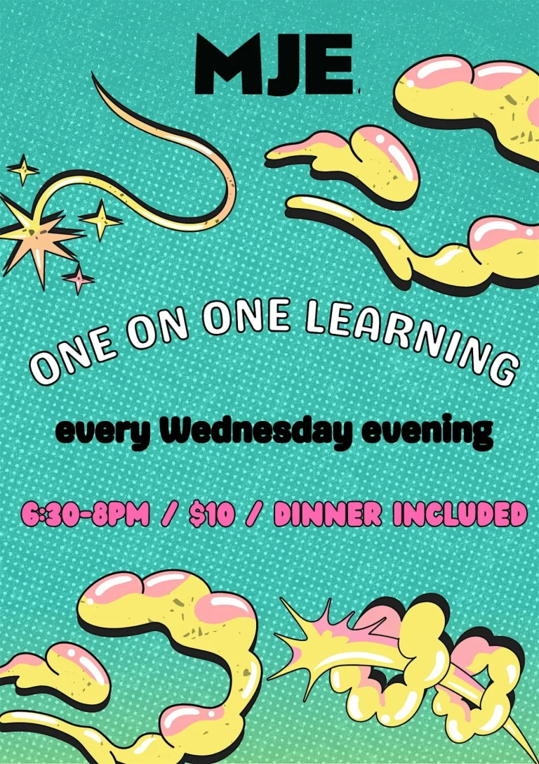 Weekly one-on-one conversations on Judaism, every student is paired with a teacher together dinner every Wednesday evenings.