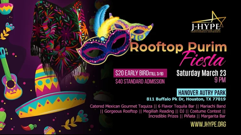 Join us for our annual J-HYPE Purim Party! This year we are going with an all-out Mexican theme and calling it Rooftop Purim Fiesta!