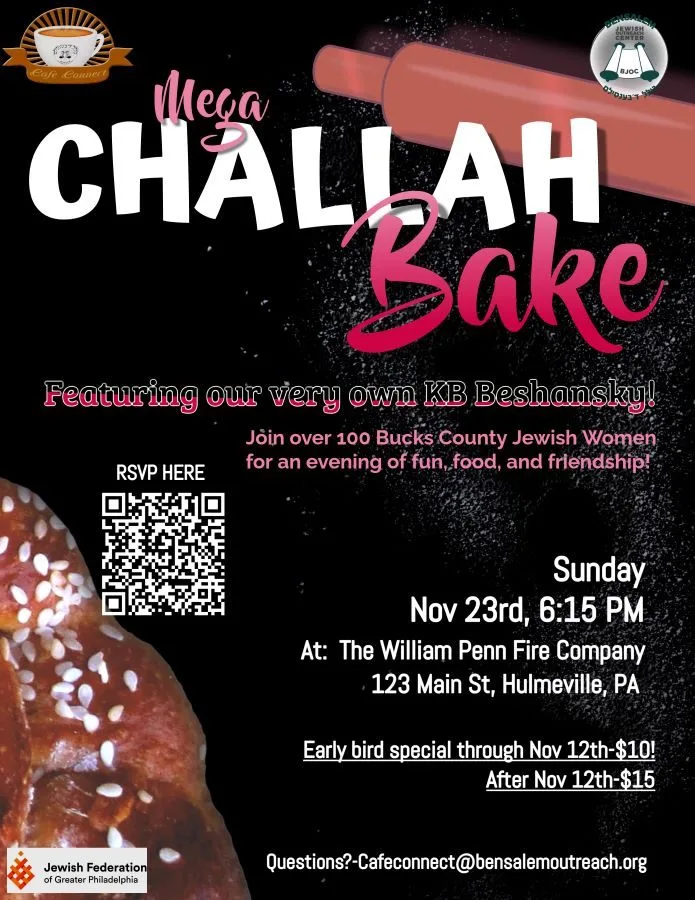 Calling all women and girls of the Greater Philly area! Join over 100 women from diverse Jewish Backrounds for an evening of fun, dancing, inspiration, and baking! RSVP required. visit…