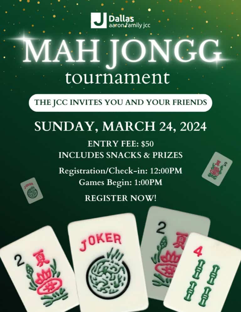 The JCC invites you to join us for our first annual Mahjongg Tournament on Sunday, March 24, 2024.