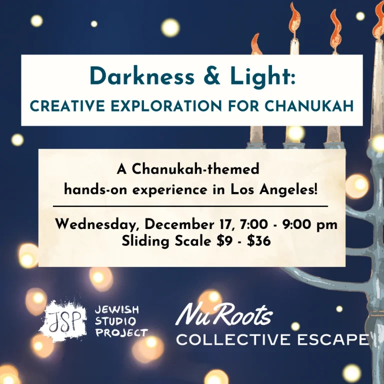 In this season of Kislev, come explore both the miracle of Chanukah’s light–and the miracle of darkness. During this session you will learn about and experience the Jewish Studio Process—a…