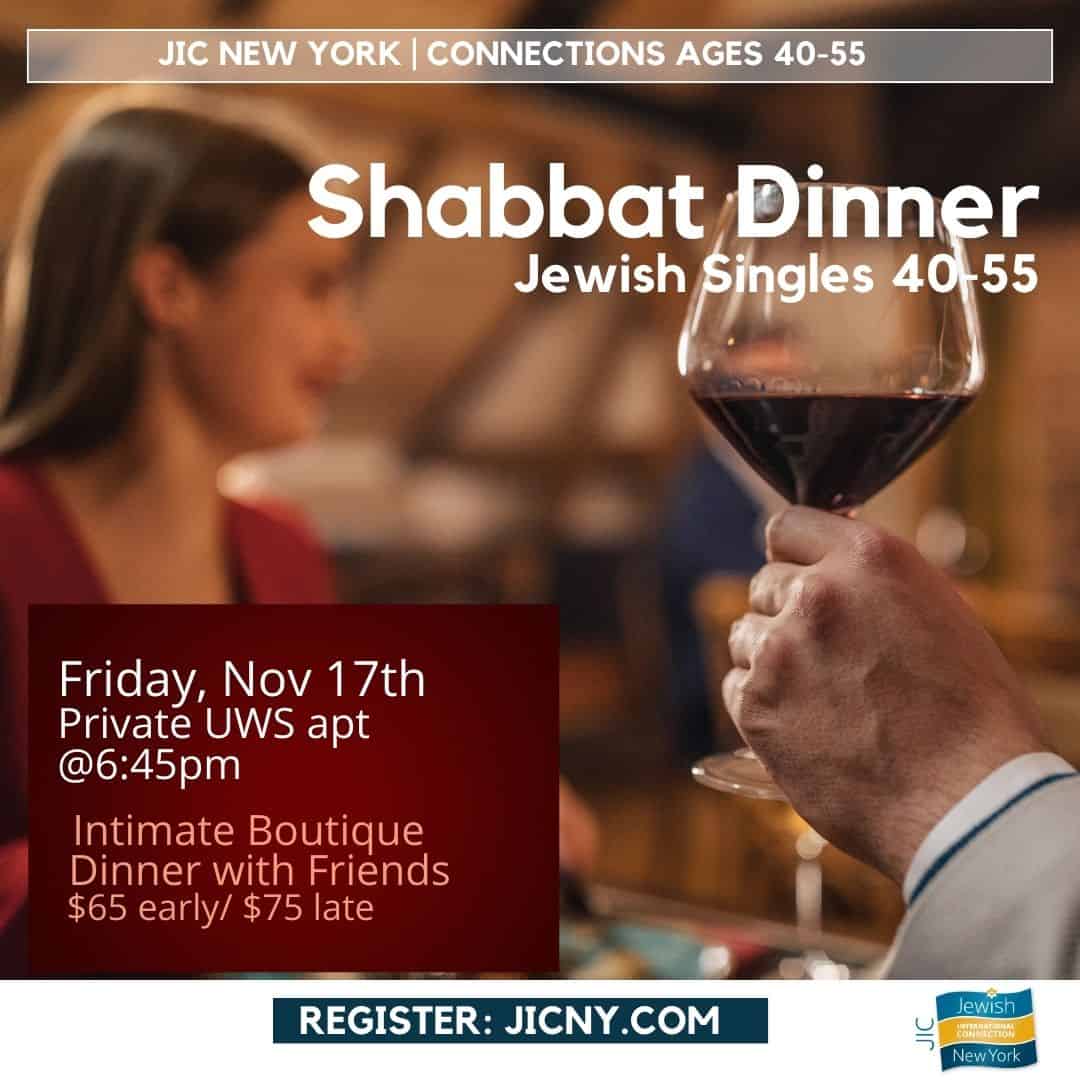 JICNY Connections Boutique Shabbat dinner for ages 40-55