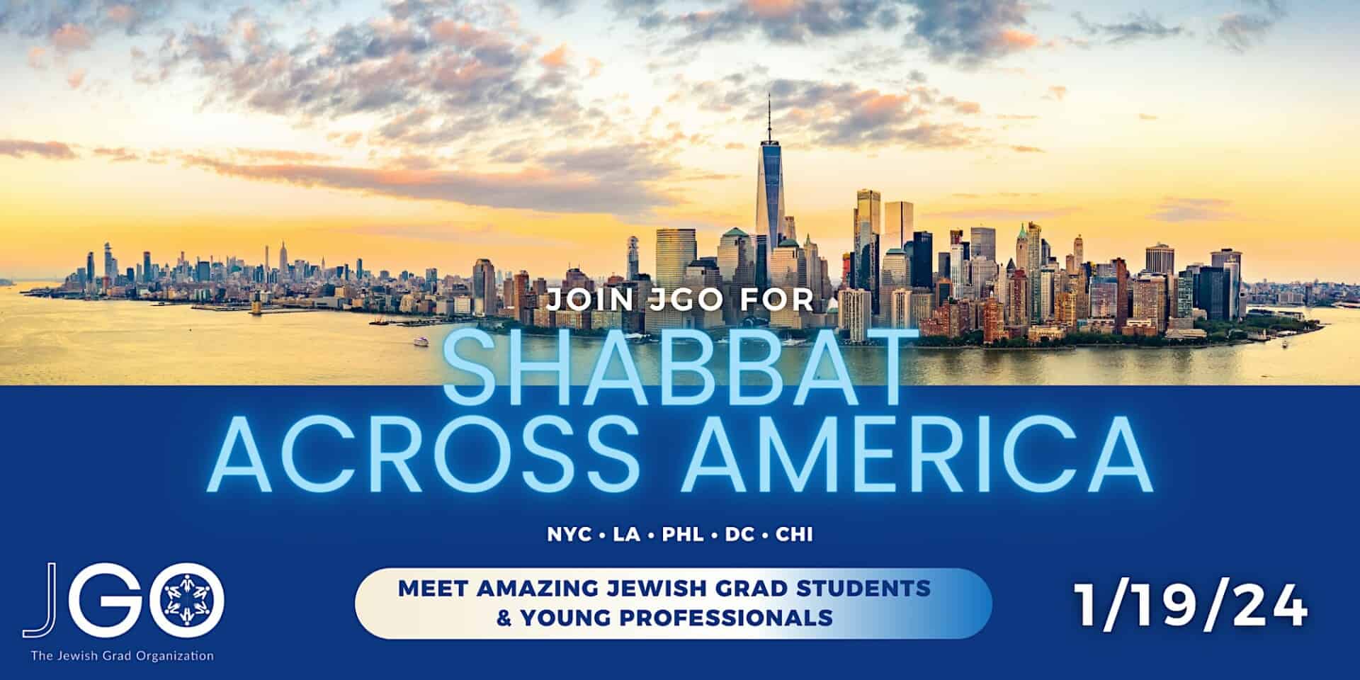 JGO is throwing Shabbat dinners for our friends across America, all on Jan 19th. We hope to inspire you to make new friends, create professional connections, and have fun! ✨