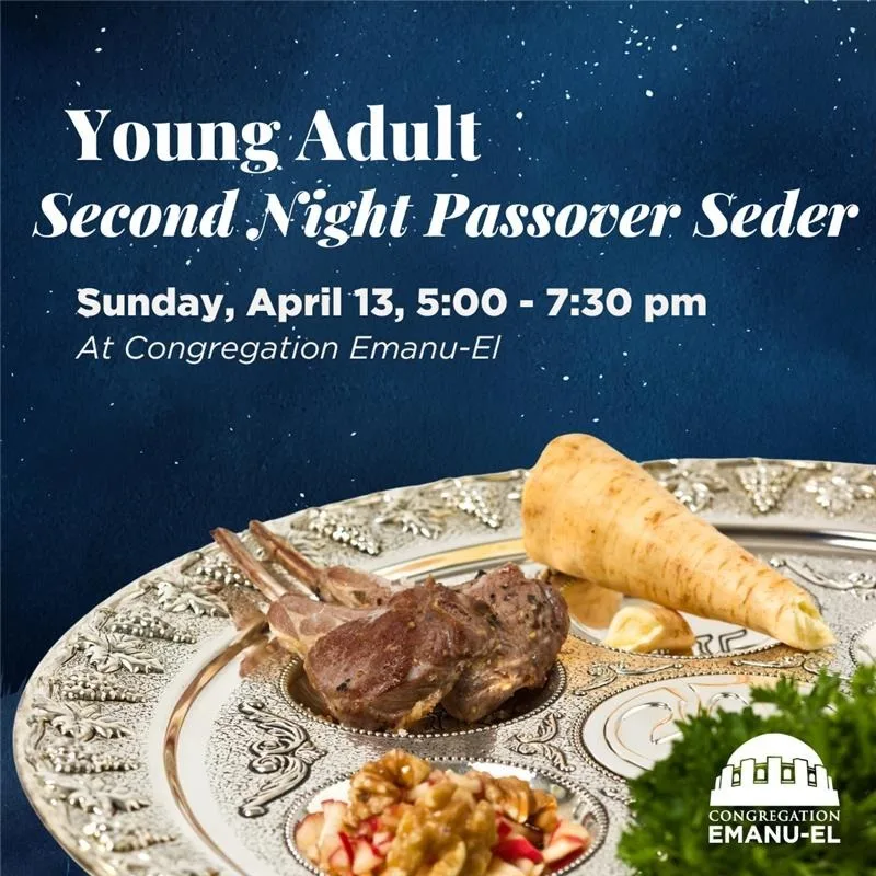Join your fellow young adults in the main sanctuary foyer for a Second Night Passover Seder, filled with tradition, music, dancing, wine, and a delicious Kosher for Passover-style meal. This will...