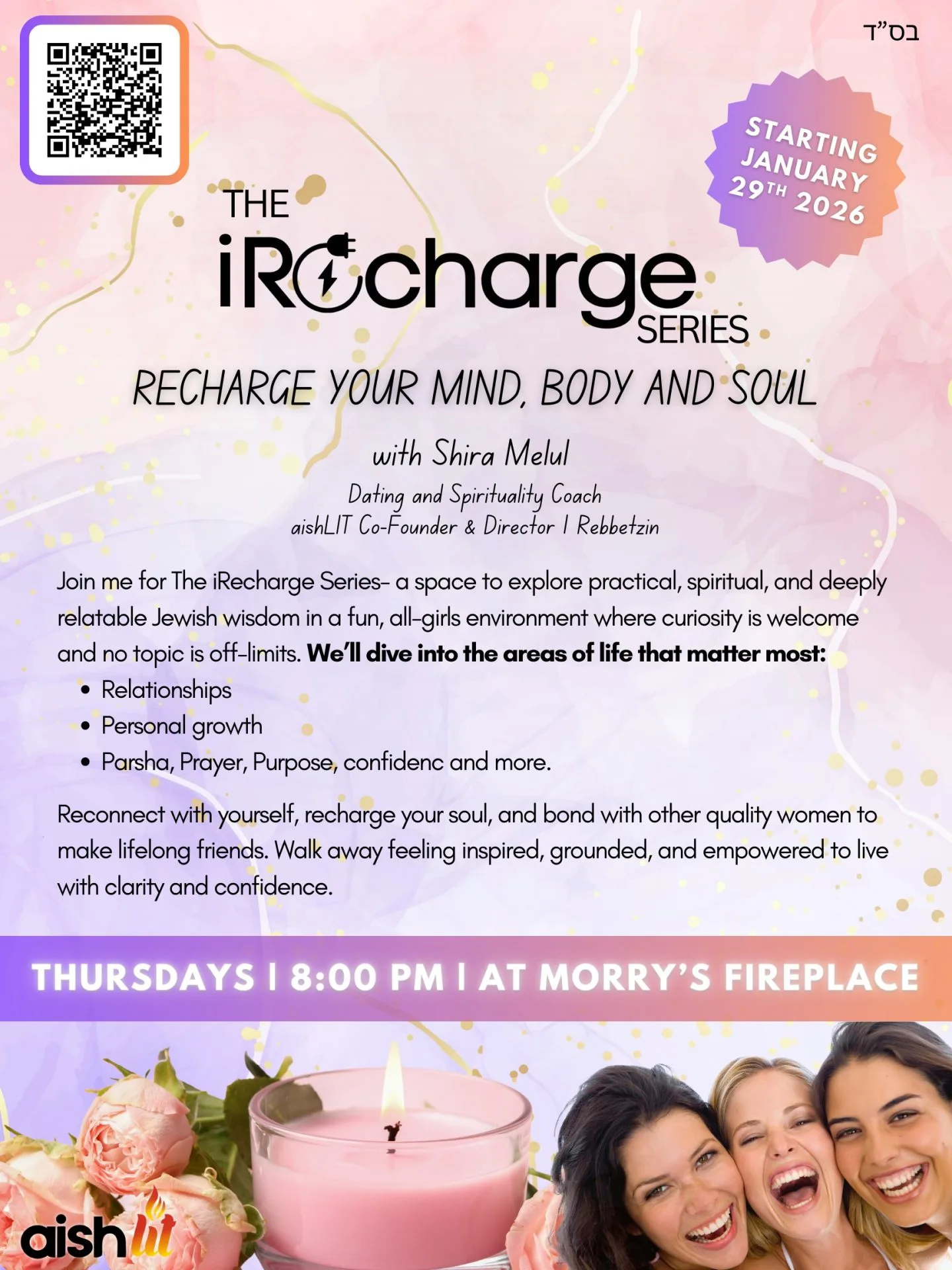 aishLIT iRecharge: Girls Social & Learning Nights with Shira Melul Jan 29 8:00 pm aishLIT iRecharge: Girls Social & Learning Nights with Shira Melul $50