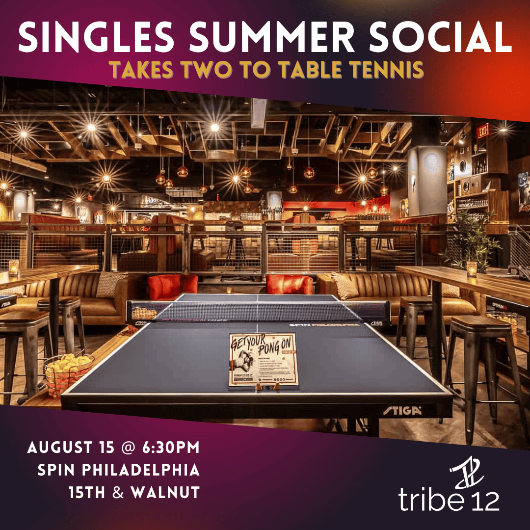 Singles Summer Social: Takes Two to Table Tennis Aug 15 6:30 pm - 8:30 pm Singles Summer Social: Takes Two to Table Tennis