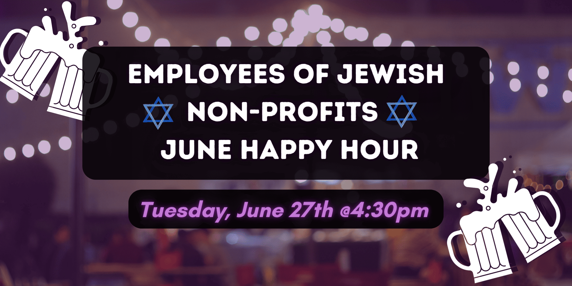 Employees of Jewish Non Profit June Happy Hour Jun 27 4:30 pm - 6:00 pm Employees of Jewish Non Profit June Happy Hour