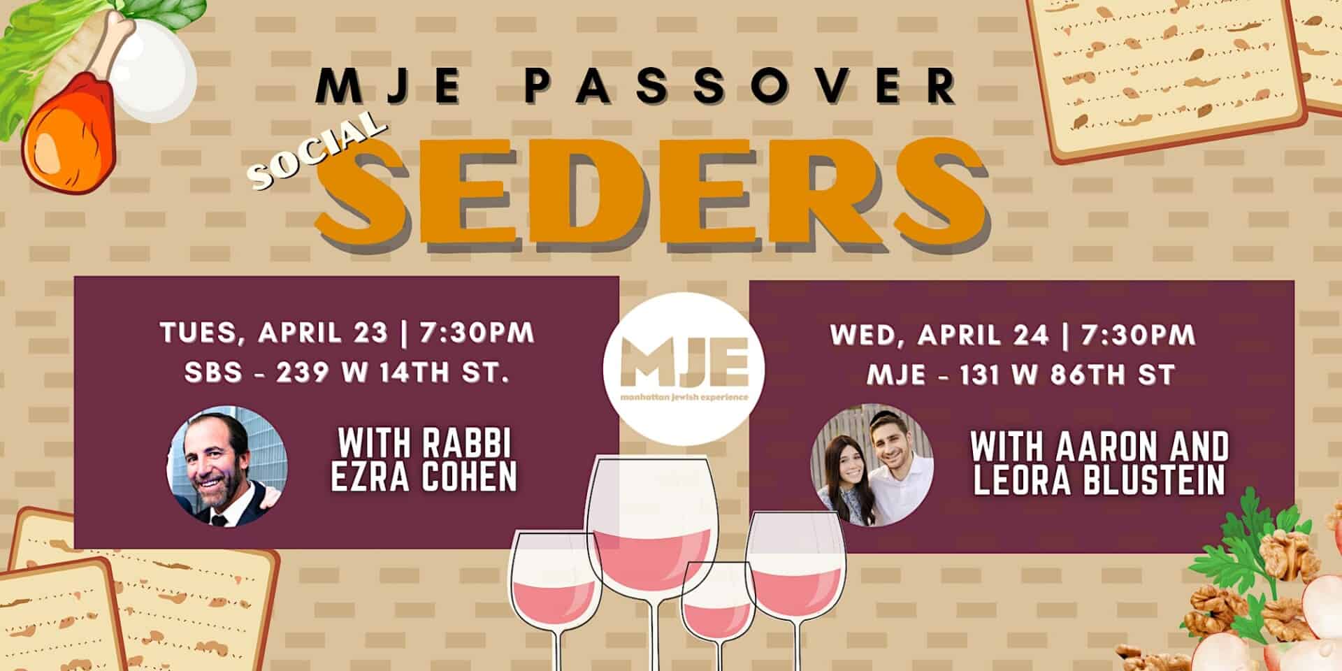 MJE 20s 30s Passover Seders 2024 1st Night 239 W 14th, 2nd Night 131 W 86th