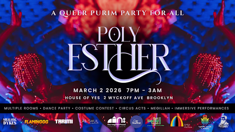 Polyesther: A Queer Purim Party For All Mar 2 Polyesther: A Queer Purim Party For All Mon March 2 @ 7:00 pm - Tue March 3 @ 4:00 am EST $47.25