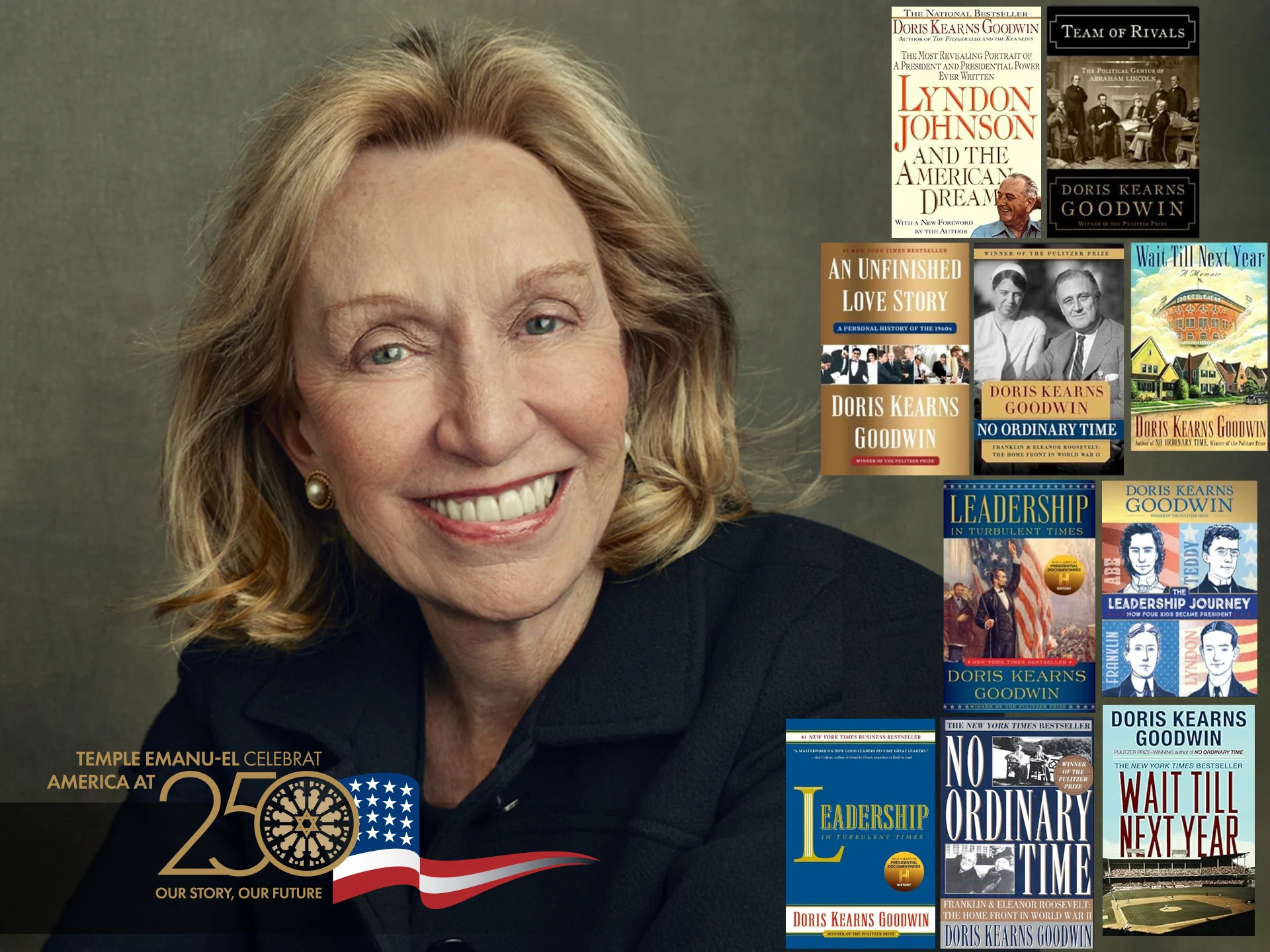 April 16 Moments That Defined a Nation An Evening with Doris Kearns Goodwin The Temple Emanu-El Streicker Cultural Center is proud to invite you to an evening of history, stories and wine with renowned historian...