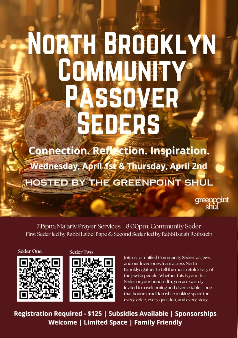 Greenpoint ShulJoin us for the first night Community Seder as Jews and our loved ones from across North Brooklyn gather to tell the most retold story of the Jewish people. The Seder is more than...