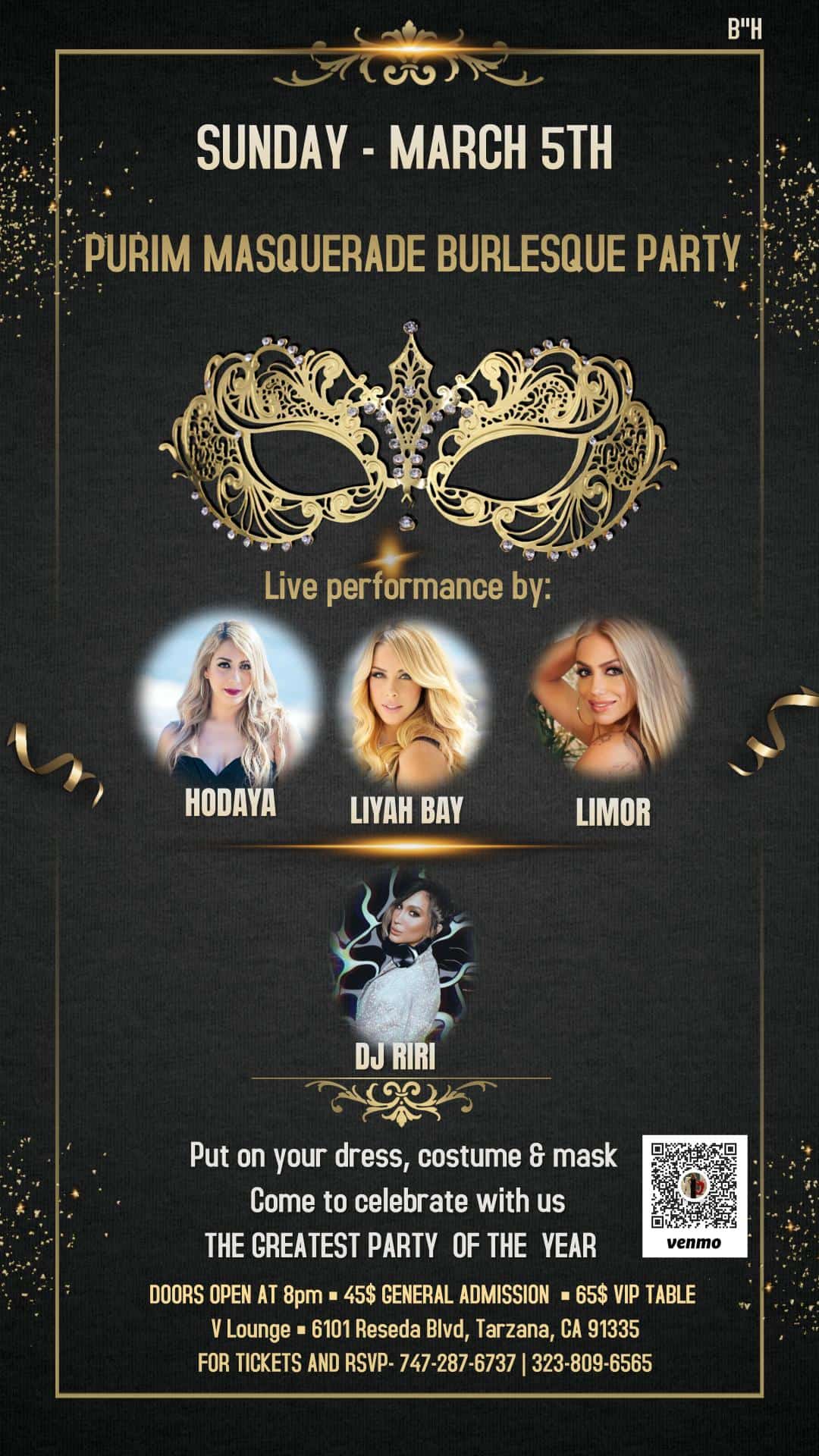 Come Celebrate The Greatest Purim Masquerade Burlesque Party Of The Year!! Put on your dress, costume and mask to come…